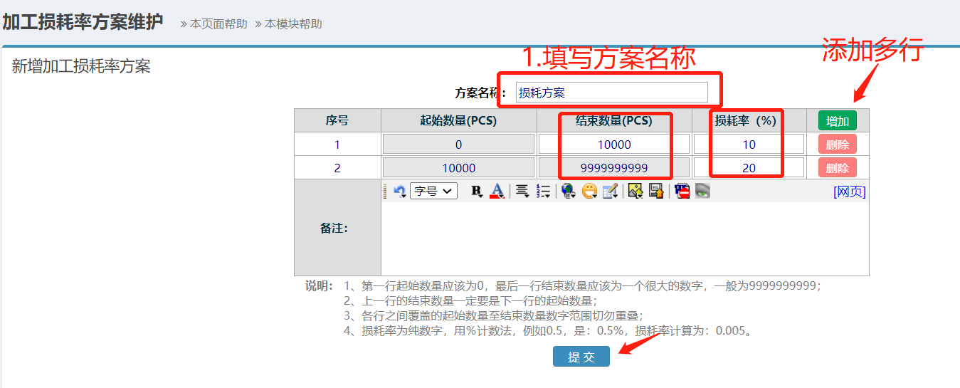 如何新增生产损耗阶梯方案?![]() 点击进入.如下图:
