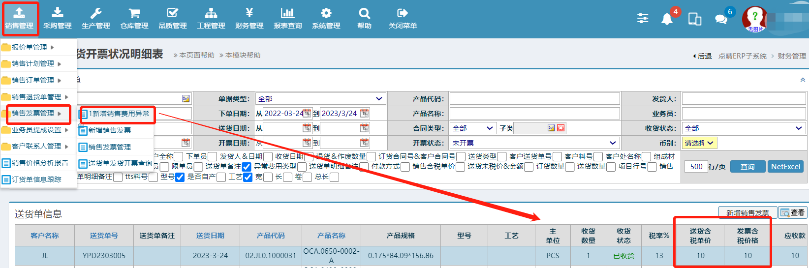 提交完后,在送货单发货开票查询可找到,然后可继续开销售发票的流程。