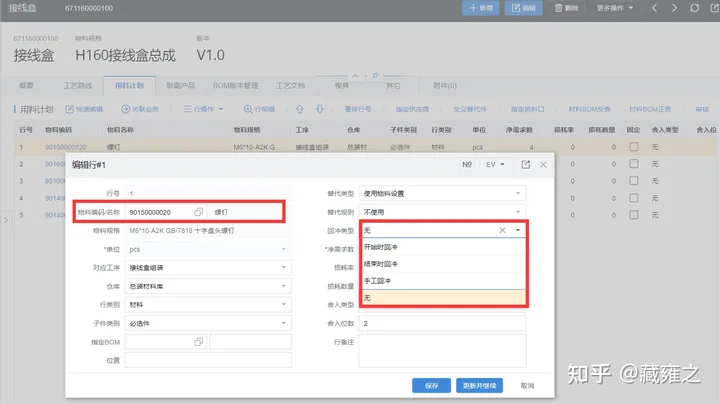 在生产制造时,利用回冲向导,回冲材料或回冲工时。 ![]() 路径:BOM-工艺路线-行编辑