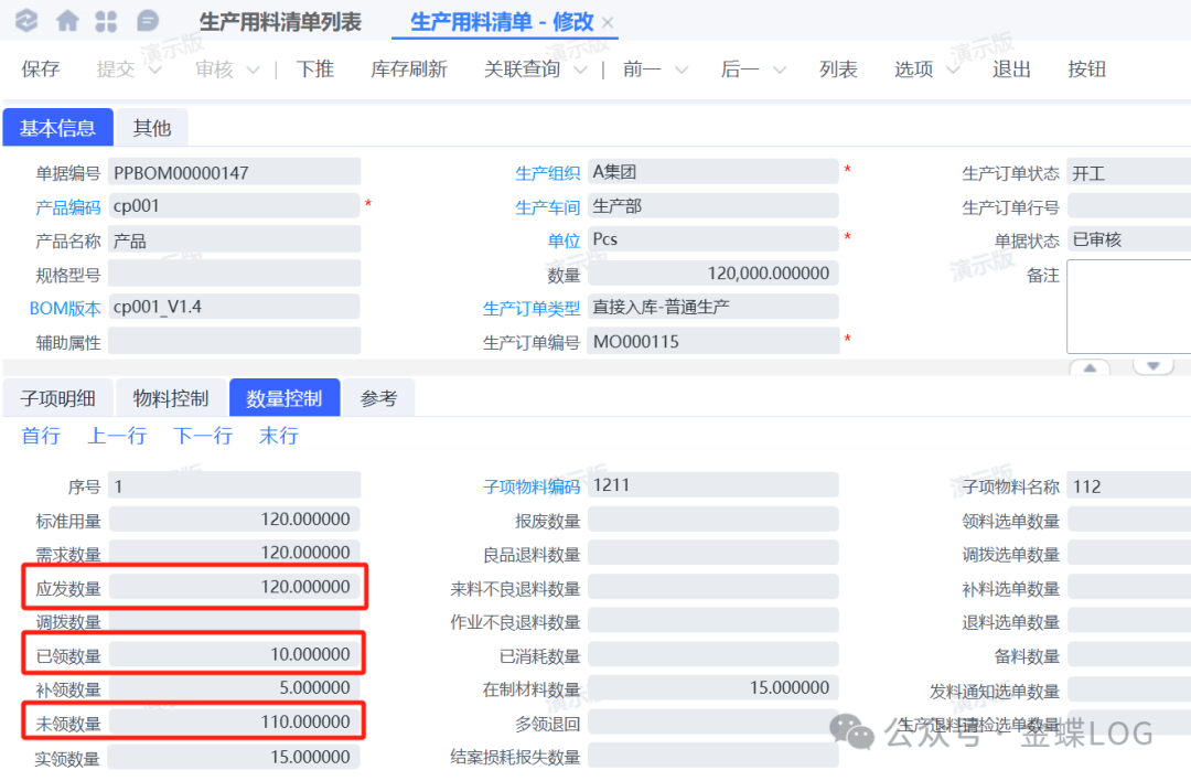 ①生产领料单和生产补料单在系统上的作用。 ②生产领料单和生产补料单对生产用料清单的影响。 ③生产领料单和生产补料单在成本上的处理。 A 问题解答 一、在系统上的作用和对生产用料清单的影响。 ①生产领料单发的是计划内的需求,也就是用料清单的应发数量;领料单在审核之后会反写用料清单的【已领数量】字段,并且会扣减【未领数量】字段; ![]() 生产补料单发的是计划外的需求,也就是一些超领动作;补料单审核后会反写用料清单的【补领数量】字段,不会扣减【未领数量】字段。 ![]() 但是这两个单据都会增加用料清单的【在制材料数量】,也就是说你需求是100个,生产领料单领了90个,生产补料单补了10个;也是能够入库100个的产品。 ![]() ②生产领料单下推出来的数量会受生产用料清单【发料控制】下的参数影响,而补料单不会。 ![]() ③在生产退料之后,是做领料单还是补料单也有区分。主要看退料单上的【退料类型】选的是什么; ![]() 如果选的是【良品退料】和【来料不良退料】,会扣减生产用料清单的【未领数量】(前提是没有勾选【不更新未领】),这时需要通过生产领料单再次出料; ![]() 而选的是【作业不良退料】的话,不会更新【未领数量】,但是会扣减【在制材料数量】,再次领料需要下推生产补料单; ![]() 如果【作业不良退料】你也要走生产领料单,那生产用料清单超发控制方式只能是选择【允许超发】。因为生产领料单发的是需求内的,作业不良一般是产线导致的损耗,正常走的是补料单。