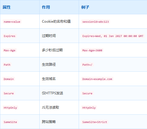 4. 服务器 → 客户端:Set-Cookie: sessionId=abc123; HttpOnly