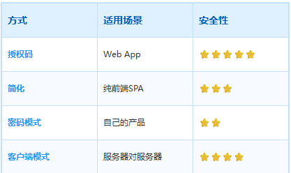 OAuth的四种授权方式: