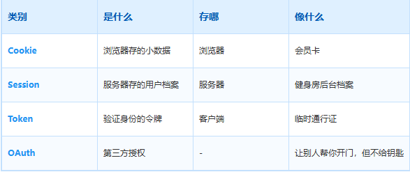 • Token = 临时通行证,比Cookie更灵活