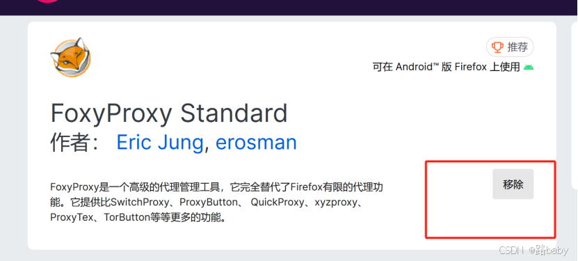 这里出现的第一个就是我们的代理插件 我比较喜欢称呼她为小狐狸 我点开 因为我这里已经安装过了 所以这里是移除的案件