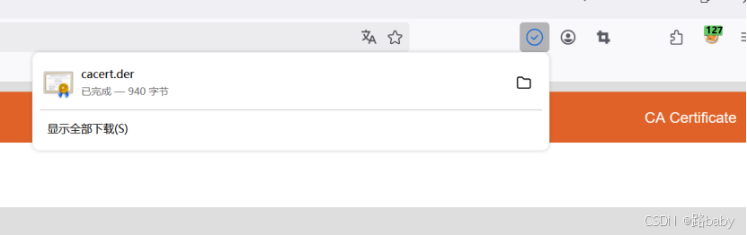 在浏览器URL地址栏中,访问 http:burp (访问的时候一定要打开代理,因为我们访问的是burp的服务器)