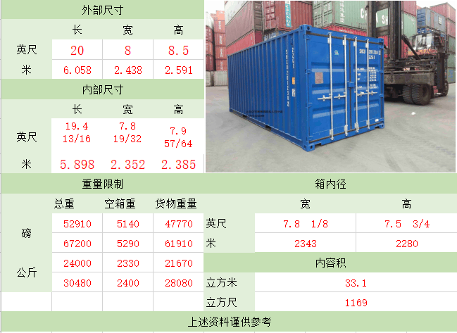 随着集装箱运输的不断发展,为适应装载不同种类货物的需要,因而出现了不同种类的集装箱。我们平日里常用的基本就是普柜、冻柜、开顶柜、挂式箱、框架箱和罐式箱这几大类。其余的如牲畜集装箱、散装粉状货集装箱、通风集装箱等特殊类这里暂且不表。常用的柜型尺寸汇总如下图:1.普通集装箱普通集装箱,又称干货集装箱(drycontaine...